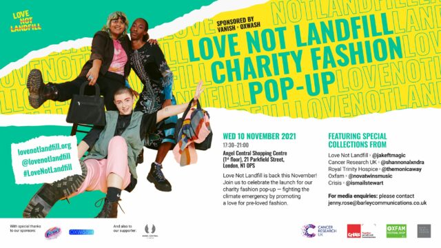 Fighting the climate emergency by promoting a love for pre-loved fashion, Eco-fashion campaign Love Not Landfill opens its charity fashion pop-up. Selling ‘clothes for everyone’ to promote pre-loved fashion and raise funds for the five charities involved, the event runs from 11 to 14 November.