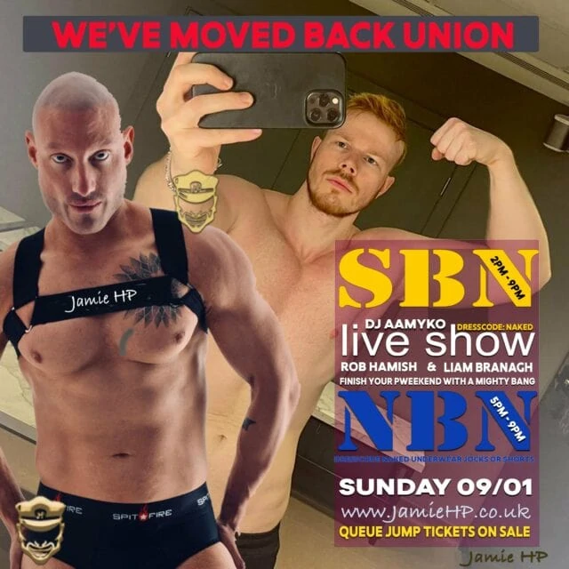 This Sunday SBN re-opens at Club Union and the dress code is ‘naked’. Describing the space, Jamie HP wrote, “Our 4500 sq ft play space designed and fully fitted by the experts at UK Red is possibly the biggest of its kind in the country and is usually throbbing at the seams moments after opening.”