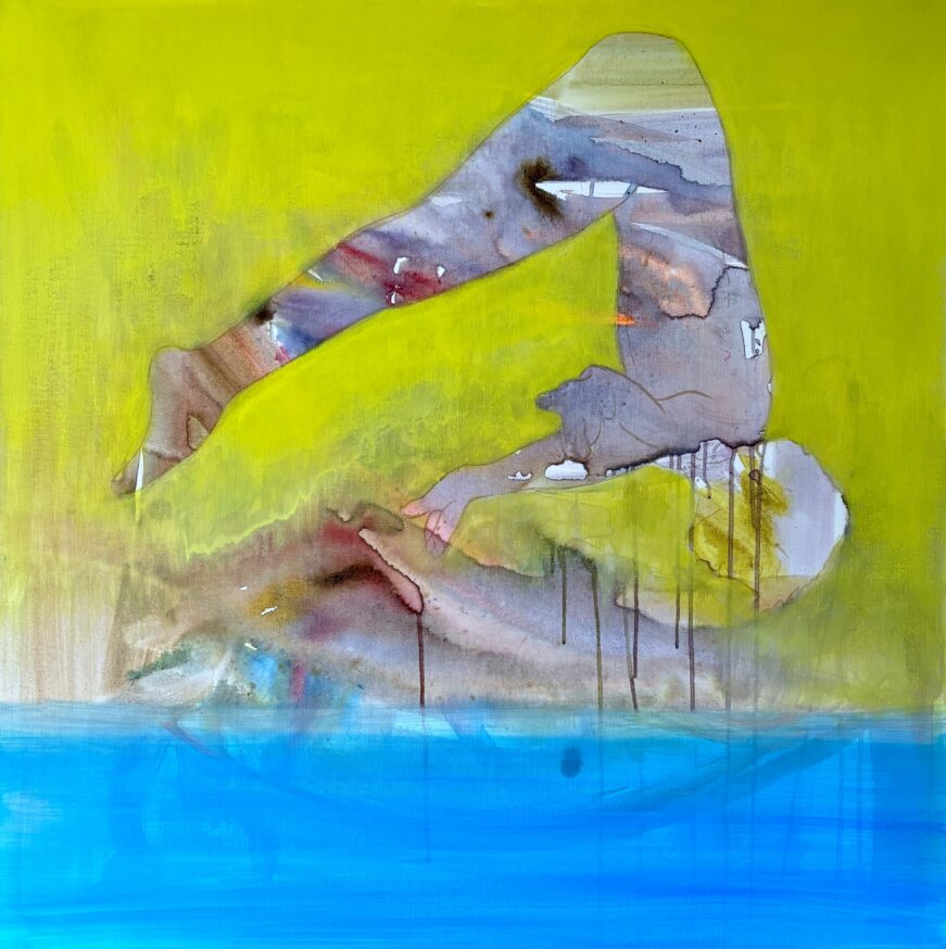 The figures in my paintings conceal themselves, seek to protect and brood, but they also revel in the joy of unexpected self-discovery that comes with understanding the power of their vulnerability. I’ve used vibrant colours and bold compositions on canvas to highlight the tension within the subjects as they ruminate, question and, most importantly, dare to express.