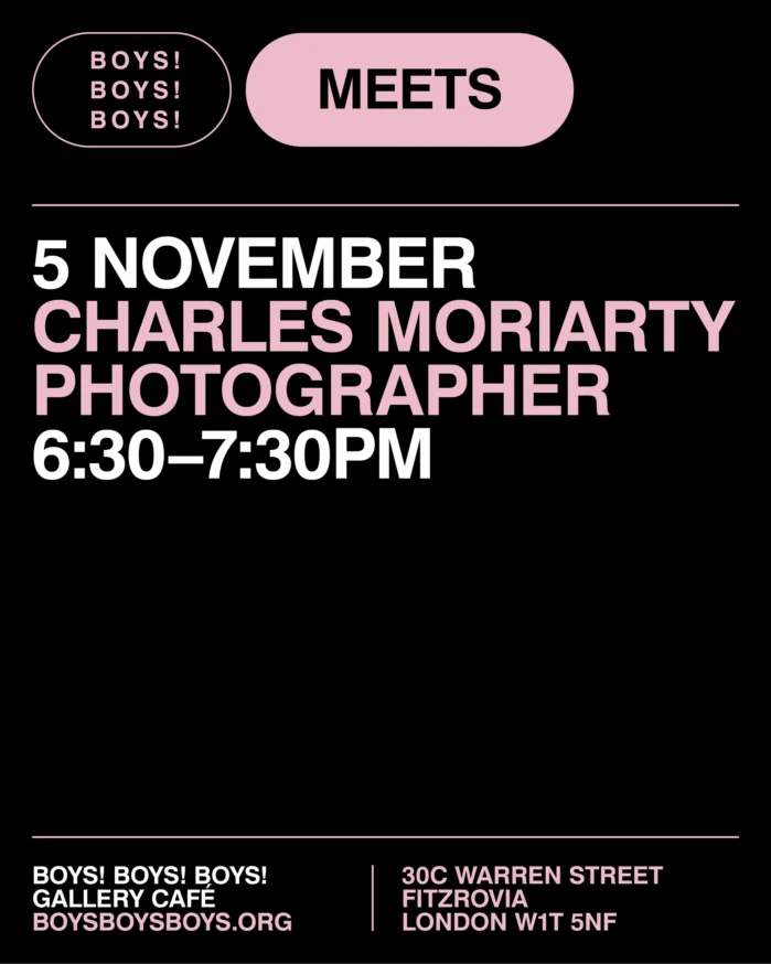 I am indeed a photographer for hire. I have regular portrait commissions. People often connect to me through my Instagram account for that, but I also have a website and shop, www.charlesmoriarty.com. Work is available to purchase through BOYS! BOYS! BOYS! and The Little Black Gallery, among several others. You can also find a wide variety of my work for sale in my shop, and if you can’t find what you want, just reach out. I don’t bite.